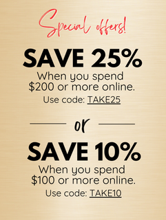 Offer 1 - Save 25% on all online orders over $200. Use code TAKE25